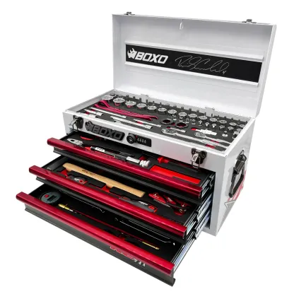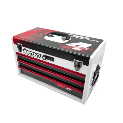 The heavy-duty 20 gauge steel hand carry tool box features; ball-bearing drawer slides allowing for ease of use, smooth-latch locking drawers, three sturdy and comfortable handles and key lock and digit-lock resettable combination lock system to keep your tools secure.