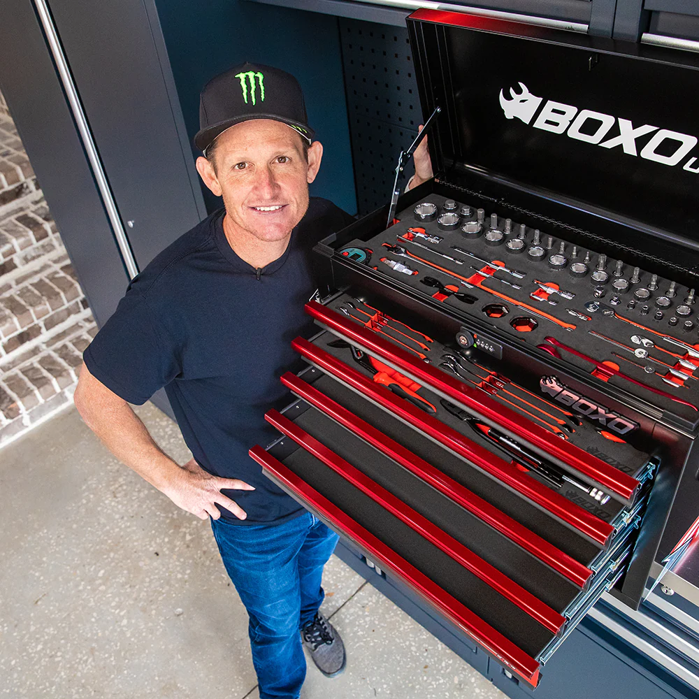 BoxoUSA’s limited edition Ricky Carmichael Motobox features a custom designed graphic that is meticulously hand applied to each Motobox. Ricky Carmichael himself personally signs each graphic, so you know you are truly getting a one of a kind.